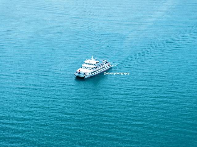 乘船游览在广阔的青海湖面,一眼望不到边,真有一种航行在海上的感觉。