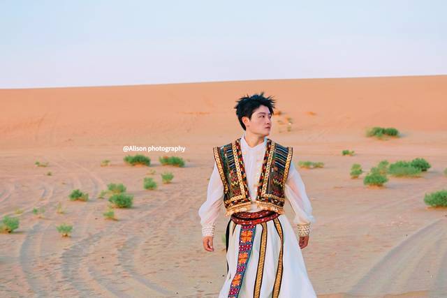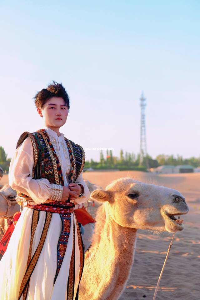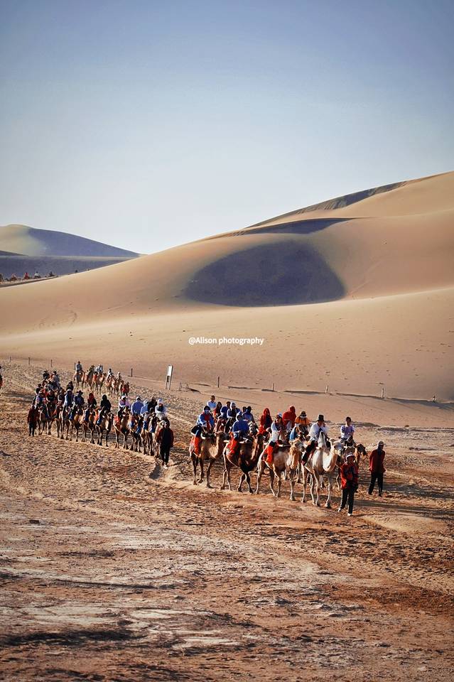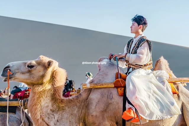 当我身穿西域服装,骑着骆驼踏入鸣沙山中,当年丝绸之路上的声声驼铃,反复回荡在我耳边,由近而远,仿佛历史的脚步在此刻停歇。