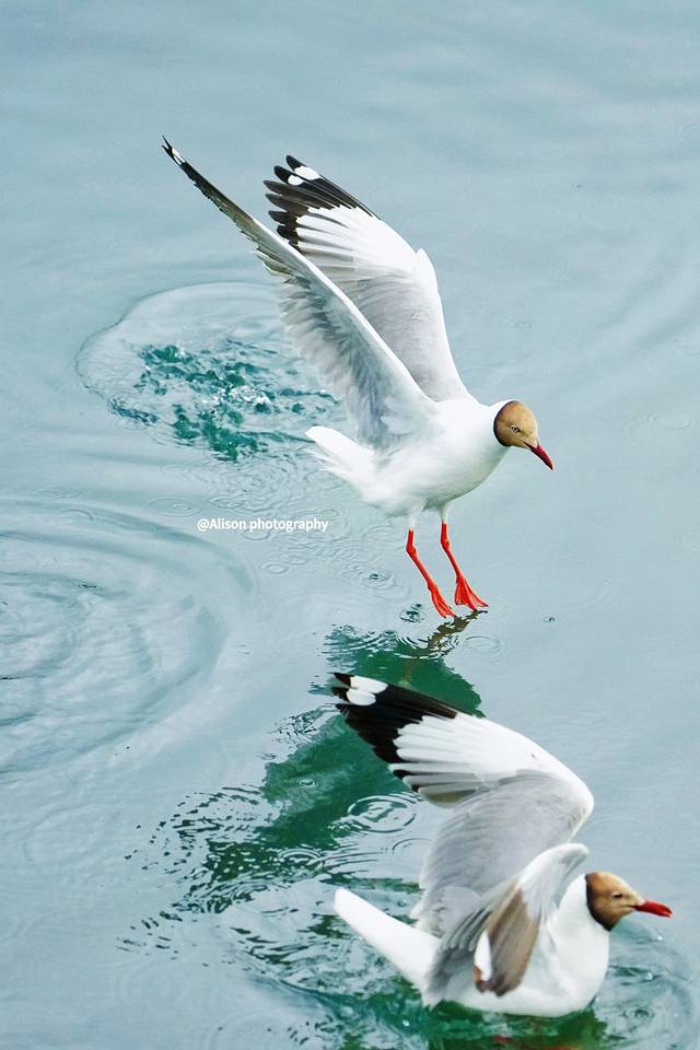 码头旁边不少红嘴鸥在这里觅食,把面包放在手中举高,它们会慢慢飞近叼走面包