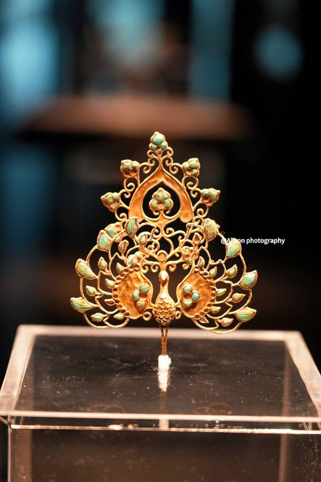 金孔雀镶嵌绿松石,纹路和造型都非常精美