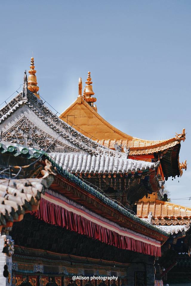 塔尔寺里有三绝,分别是壁画、堆绣以及酥油花。我印象最深的是酥油花。在酥油花馆里欣赏到纯靠酥油打造出来的佛像、山水景观等艺术品,是真的惟妙惟肖!因为寺内不允许拍照,所以相机只能拍建筑外围。在寺内静心走一圈,三绝确实让人惊叹技艺的精湛!
