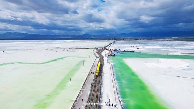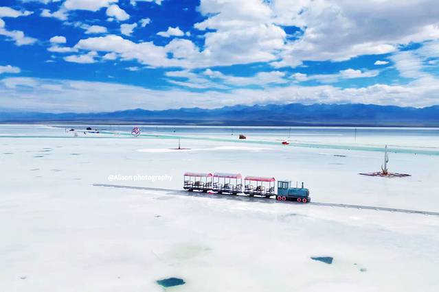 在茶卡盐湖,坐着火车一路前行,体会天与地的纯净