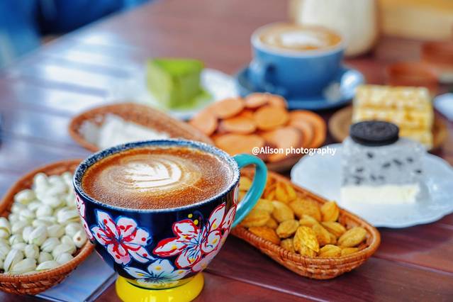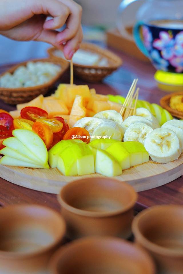 在青海湖边的呷布哒里,大家围炉煮茶,喝着咖啡,吃着甜品水果,晚餐搭配的是热腾腾的火锅和烤肉。我们原本是要入住这里的帐篷,但阴雨天让我们临时改变了计划。