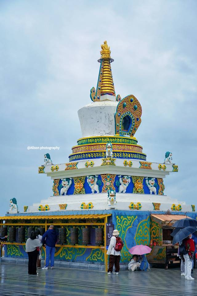 虽然一直下着雨,白塔下的转经筒却一刻也没停止转动