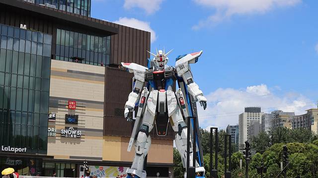 吃饱了就出发,回酒店拿上行李退房之后,我就直接坐地铁去浦东了,毕竟这次回香港的航班是在浦东机场起飞。不过我并不是直接去机场,而是先到LaLaport商场门口,去看看这里的自由高达立像,打卡到此一游。这次看到自由高达立像,我感觉梦回2019了,毕竟当时在东京台场也有看过高达立像,只不过当时看到的是Unicorn。