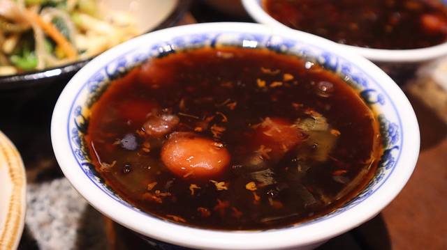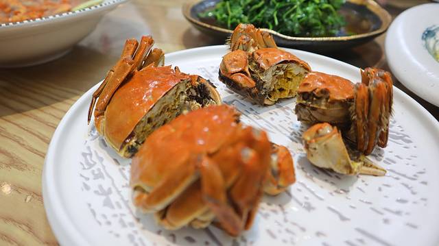 傍晚没那么晒的时候,就是出去早点吃饭的时候了。这次在苏州连续两天都是在观前街附近的“苏味园苏帮菜私房菜”吃晚餐,这里的出品算是不错的,尤其是腰花和熟醉蟹。不过呢,这里的蟹黄汤包是相对失色了,有点干而且皮偏厚。
