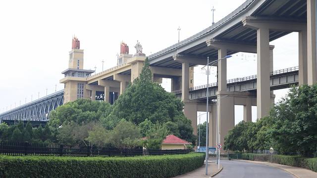 吃饱了就继续出发,打车去了南京长江大桥,虽然并没有上桥,但是在附近有一个玻璃桥可以近距离看到南京长江大桥。和武汉长江大桥一样,南京长江大桥也是双层的跨江大桥,上层走汽车,下层走火车。