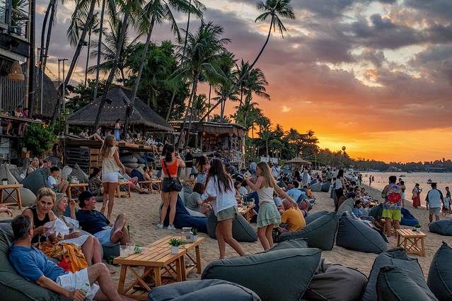 临海的餐吧,坐享无敌海景,海滩设有懒人沙发,餐厅内还有秋千座椅、小屋、水烟,及大型投影屏幕,天气晴好时候,可以欣赏迷人的日落美景,每天晚上还有精彩刺激的抛火球和打铁花表演。