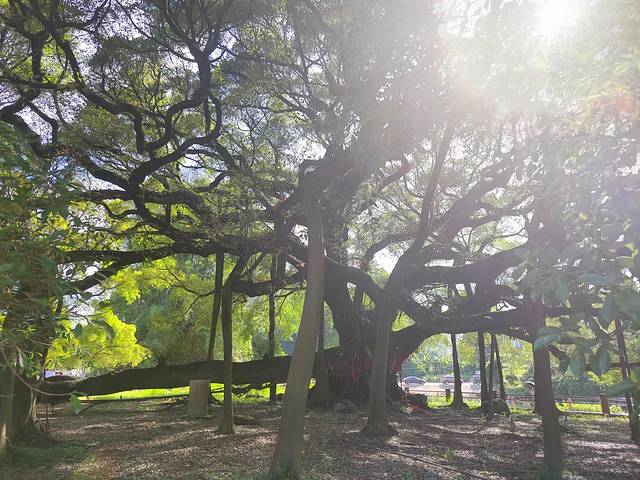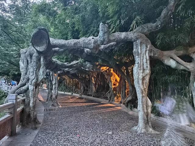 漂流完我们就照样骑行回去,然后来到了进来时的一个景点,千年古榕树景区(还需要15元的门票),这里是个公园,里面主要就是古榕树和热气球,也有小型竹筏漂流,主要还是这棵古榕树独成一片小鸟的天堂。