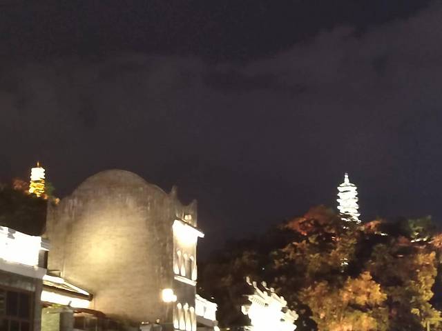 第一站我们去的就是五星步行街,算是柳州的市中心,整体来讲是很热闹,但是可能去过很多城市的步行街,所以感觉偏古旧了些。步行街直走尽头就到了看音乐喷泉的广场,每天晚上8点、9点开始,持续15分钟(说实话,虽然大型,但是感觉音乐和喷泉样式不多)。看完喷泉我们就前去窑埠古镇,一到古镇就看到了标志性建筑——龙城阁,在夜晚灯光映照下特别好看,底下四周有许多拍民族照片的小姐姐们。整个古镇走下来,感觉与其他城市差不多。