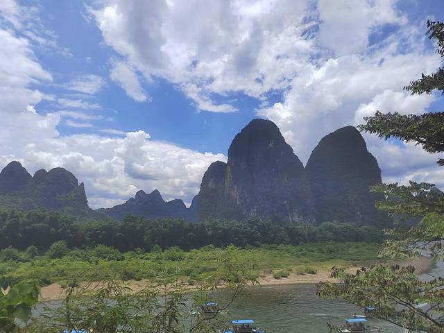 到达阳朔后我们先到的是兴坪古镇(离阳朔站更近),到达后在这里最好租个小电驴(一天30,阳朔整个县城都非常适合小电驴这样的交通工具),就可以开始山水之旅。兴坪古镇是在漓江边上,这里主要有20元打卡景点以及漓江游船之旅。我们因为第二天要去玩竹筏,便没有选择上游船看漓江,而是小电驴一路前行,看崇山峻岭,品山水之美。
