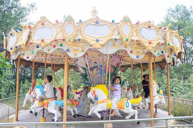还有可爱的旋转木马,感觉公园里的各项游乐设施都被搬进了山间。