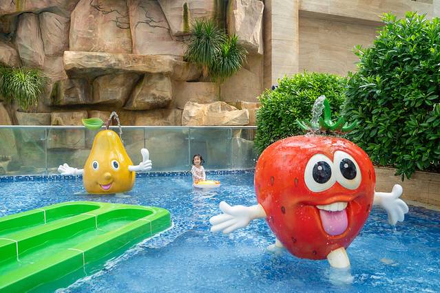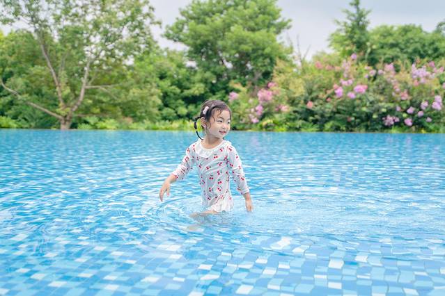 这个池子水很浅,小一点的宝宝也可以肆意玩水。