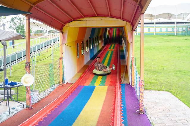 这里的彩虹滑道也是在火车厢里哦,不过这个项目只能一人一座,1米1以下的小朋友感觉不是很适合。