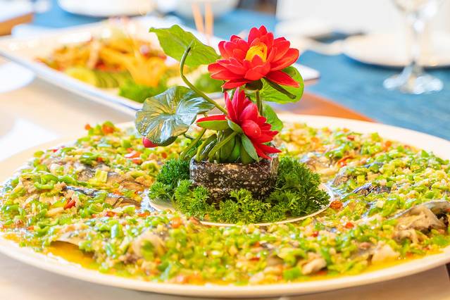 各种口味的鱼做法,每一道菜品看着都很精致,我最喜欢的是他家的风味翘壳和七彩哨子鱼唇。