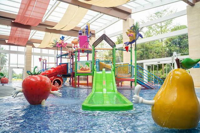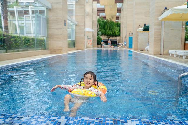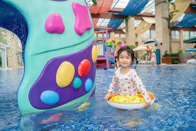 室内的儿童戏水区适合低龄小朋友,室内区域水浅而且不用担心晒黑。