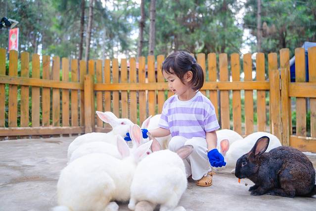 萌宠乐园有各种可爱的小动物,小松鼠,孔雀等,还可以买蔬菜喂小动物。