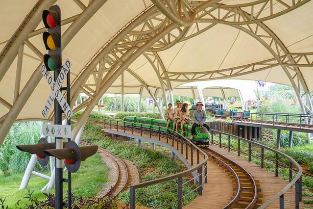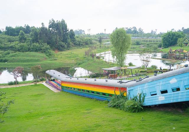 我最喜欢的是环湖小火车,火车行驶在池塘水面上,上午来还能看到睡莲,场景打造的十分梦幻。