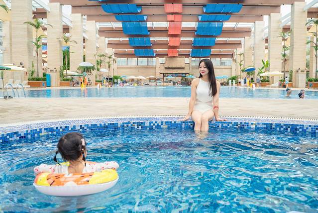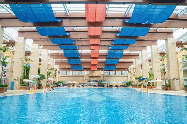 水乐园在黑龙滩环球融创天堂洲际酒店内,如果是定这里的住宿都可以免费游玩。
