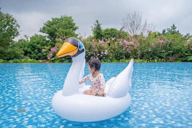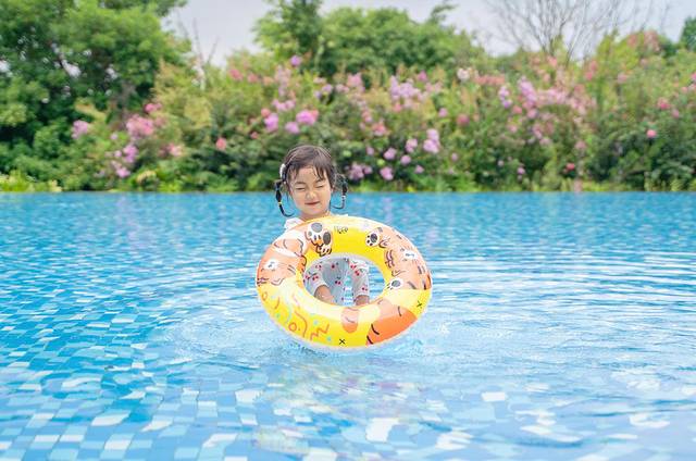 小家伙说了好久要游泳,这下可以尽情玩啦。