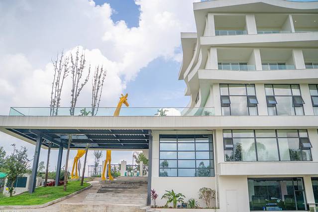 很适合周末亲子度假,酒店建在山谷里,自然环境很棒。