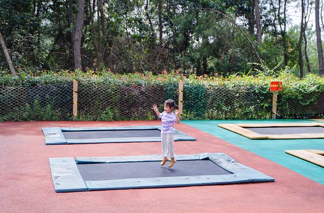 林间的蹦蹦床也是我家孩子的最爱,开心的在上面蹦哒蹦哒。