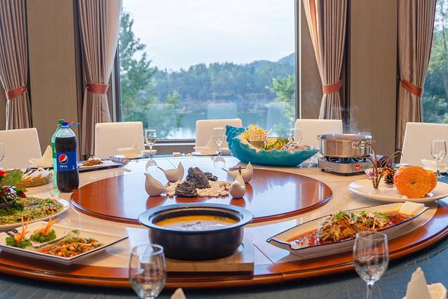 整个山庄临湖而建,座落在山间,环境十分幽静。