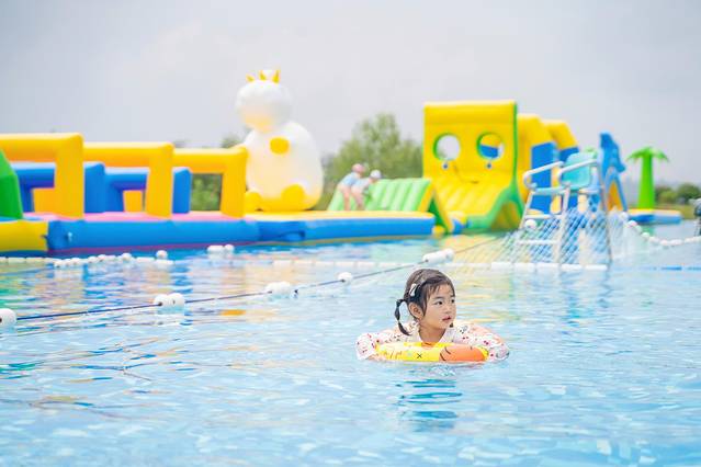 无边泳池还有大型的水上游乐设施,适合大一点的小朋友耗电。