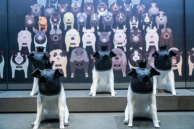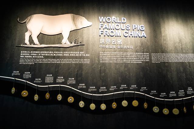 在金华两头乌猪博物馆里,我们不仅看到了金华猪的成就,还了解了关于金华两头乌的一系列故事。金华猪,作为中国著名的优良猪种,堪称“四大名猪”之首。身体两端呈现出黑色,中间白色的,而在黑白相交的地方,还有灰色的“晕带”,这种独特的外观让人们称其为“两头乌”。因为这种毛色与熊猫非常相似,所以人们也俗称“中华熊猫猪猪”,金华两头乌猪被视为中国国宝级的国猪。