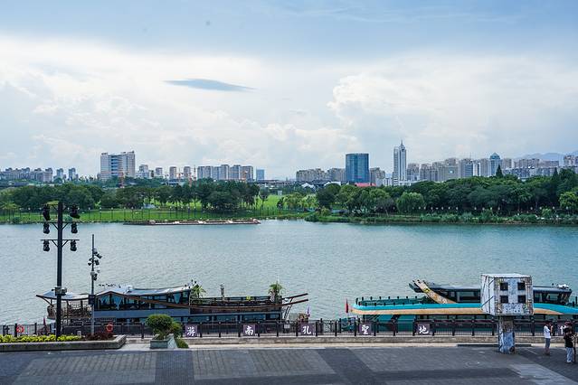 站在碧春楼,可以看到信安湖对面的新城,风景秀丽,云朵飘飘。
