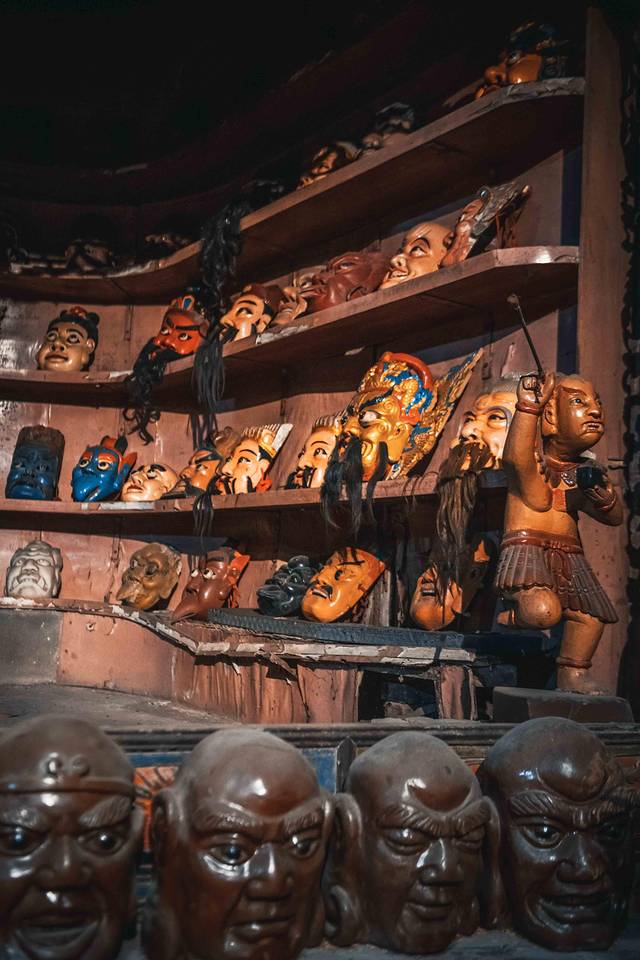 第二天的第一站,抵达石洞口的傩庙,在这里开启一段神秘之旅,探索傩文化的奥秘,感受古老仪式的神圣与庄严。石洞口的傩庙经历了宋、元、明、清等多个历史时期的洗礼,见证了傩文化的传承与发展。而庙宇中的一大亮点,便是那些精美的古傩面具。这些面具,承载着艺术的灵魂,栩栩如生的雕刻和精湛的工艺,让人叹为观止。这些面具的造型饶有创意,各具特色,仿佛在诉说着千年的故事和智慧。