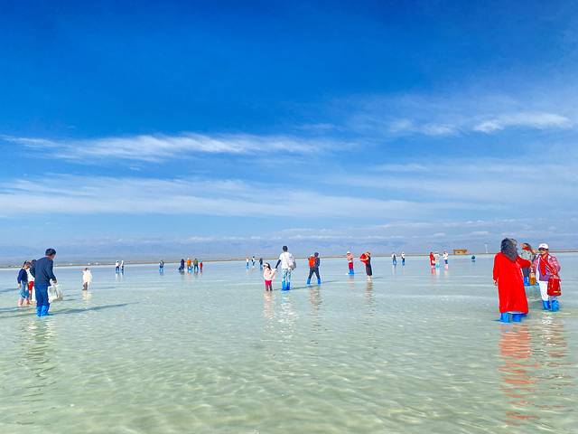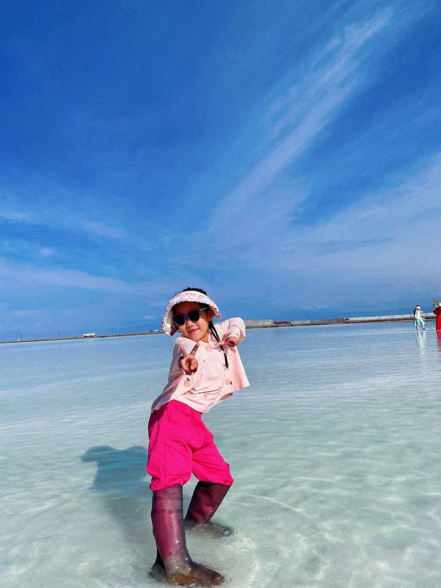 一大早6:00多就爬起来收拾,把崽7:00叫醒,去茶卡,一定要早!早!早!早了的话完全可以不用排队,我们7:00多出房间的时候,整个酒店已经人头攒动,车已经走了一半!我们去的是天空1号,天空之镜,最近一直在排队3小时起,因为当天还要回西宁,所以,果断选择了天空一号。