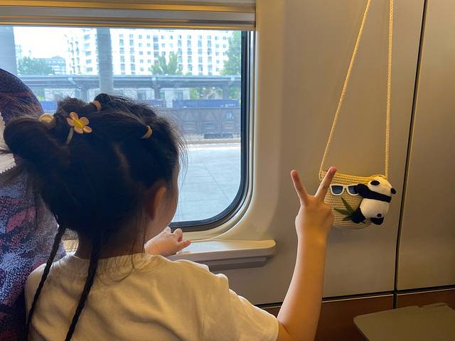 到达,崽还是比较活泼的,精力旺盛,坐高铁4小时,还能适应,老母亲买了画画书,安静书各种手工分散她的注意力