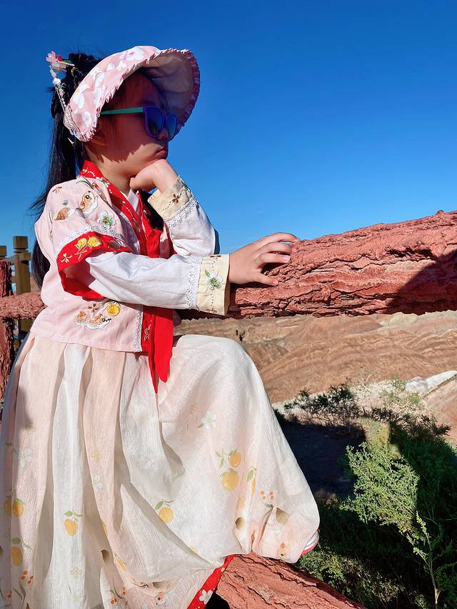带孩子晚上从丹霞出来的时候一定要记得带一个披肩,白天温度的确高,但是晚上有一点点冷,崽已经累到了,上车就睡
