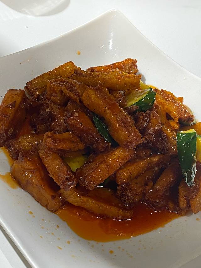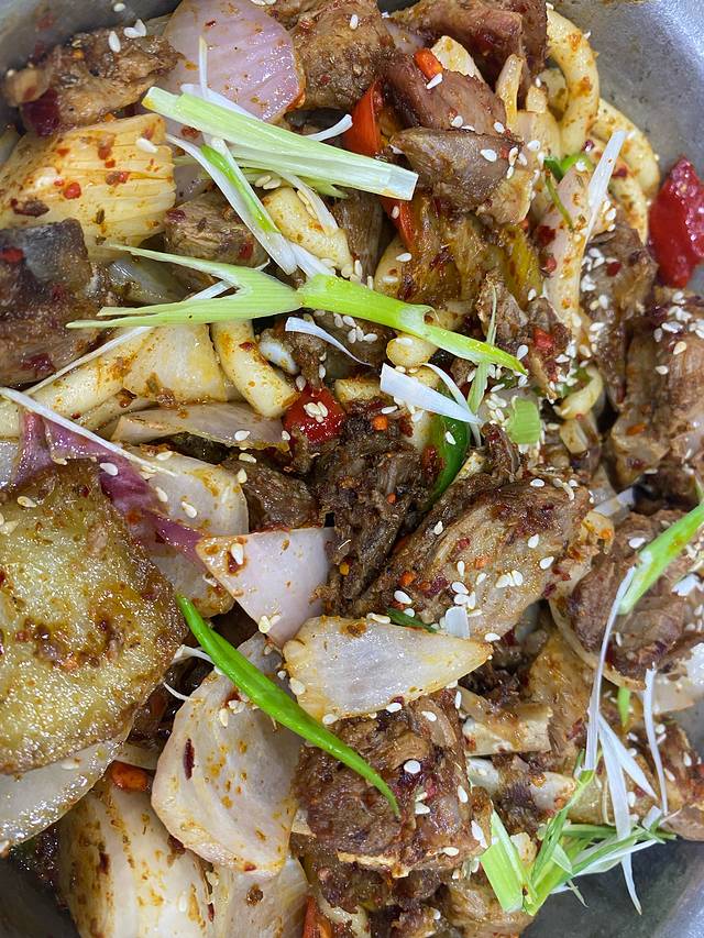 土豆很好吃,肉肉也不错,但不如想象中嫩,再推荐一次炕锅土豆,好吃!斜对面有家酿皮,当地人推荐