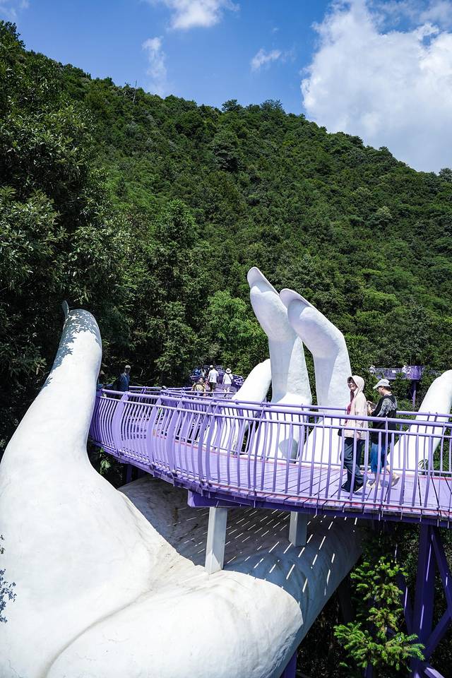 走完天桥抬头就能看到紫金花天空之镜