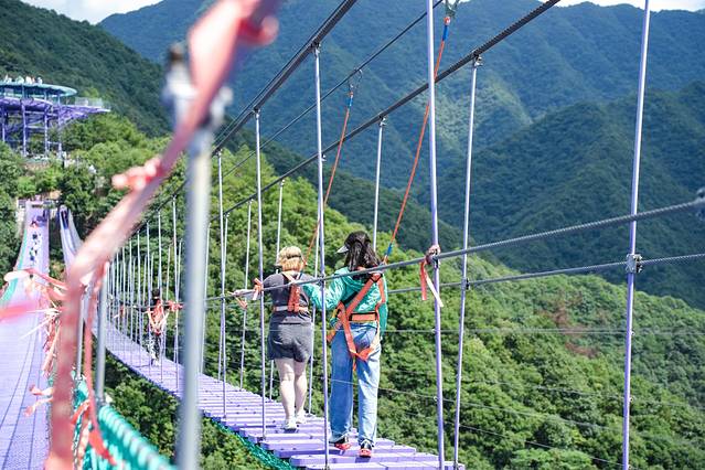 我们是带了身高140以下的小朋友,小朋友需要在大人陪同下走云梯天桥,天桥走上去还是很稳的,小朋友也不会害怕。
