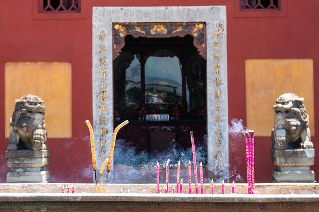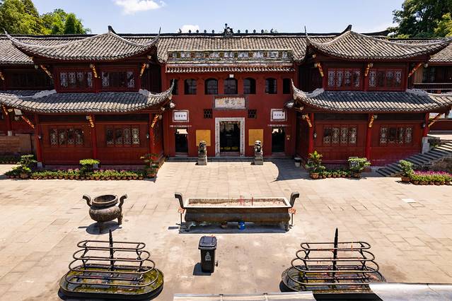 在乐山大佛的南侧,便是乌尤寺。经过乌尤寺,可以到达乐山大佛景区的南门。也可以在乌尤寺码头,乘船前往观赏大佛。乌尤寺,原名正觉寺,坐落于景色优美的乌尤山,乌尤山也称离堆。千年古刹乌尤寺,始建于唐代,距今已有1300多年历史,比乐山大佛还早建成。整座寺庙,绿瓦红墙、亭台楼阁、布局精巧。天王殿、弥陀殿、大雄殿、观音殿、罗汉堂、乌尤殿等殿宇建筑,保存较为完整。另外,景区是免费的。