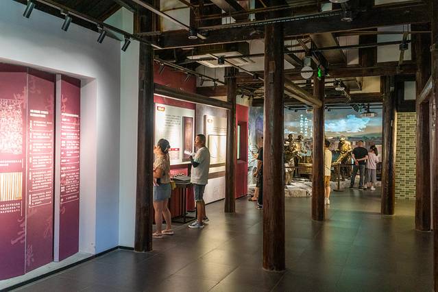 苏稽古镇被誉为“跷脚牛肉第一镇”,推荐打卡古镇里的跷脚牛肉非遗馆,可以了解苏稽跷脚牛肉的历史文化与特色技艺。整个非遗馆主要分为四个展示单元,从诞生背景、历史变迁、匠心技艺、传承发展等角度,全面呈现了“跷脚牛肉”的前世今生。参观完跷脚牛肉非遗馆,记得找一家餐馆品尝下美味的跷脚牛肉。