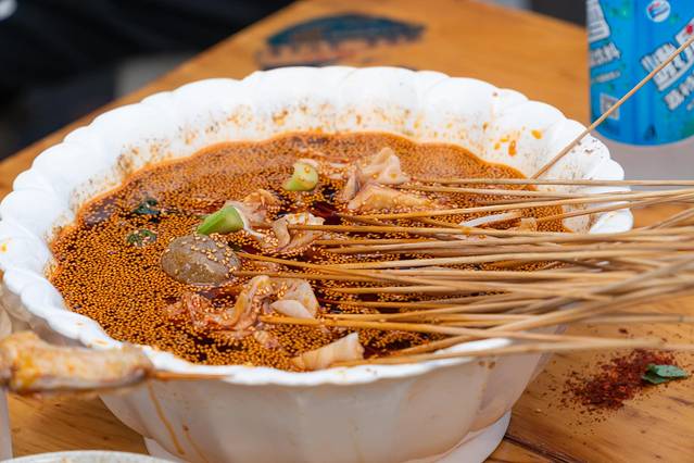 乐山市市中区,同时也是美食之都。听成都的好朋友调侃道,“外地人到成都吃而成都人到乐山吃”,足以见得乐山市市中区的美食有多好吃。跷脚牛肉、钵钵鸡、临江鳝丝、甜皮鸭、豆腐脑、咔饼、麻辣烫串串香、怪味土豆、乐山烧烤、乐山烧麦、油炸、冰粉、凉糕、绵绵冰等美食,数不胜数。乐山市市中区的张公桥好吃街、上中顺商业街区、东大街、嘉兴路美食街、宝马美食街等,整座城市分布着各式各样的美食街。烟火气十足的嘉州,满足着八方食客的味蕾。