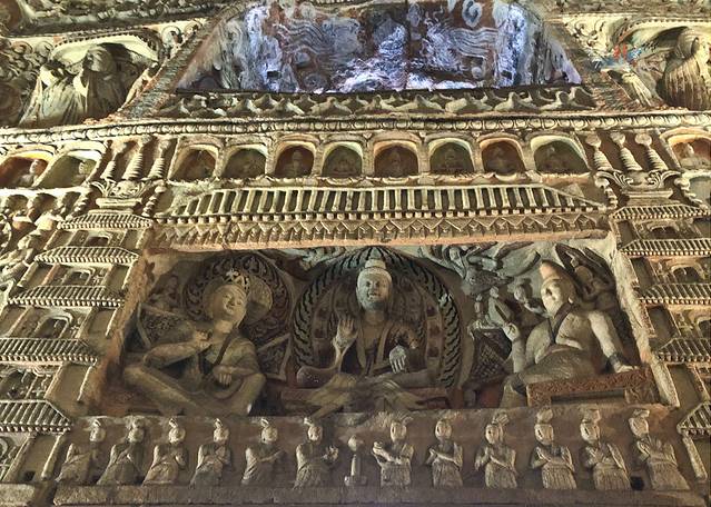 现存主要洞窟45个,大小窟龛252个,石雕造像51000余躯,最大者达17米,最小者仅几厘米。窟中菩萨、力士、飞天形象生动活泼,塔柱上的雕刻精致细腻,风格多样丰富,保存整齐完好,欣赏价值极高,是四大石窟中我最喜欢的。