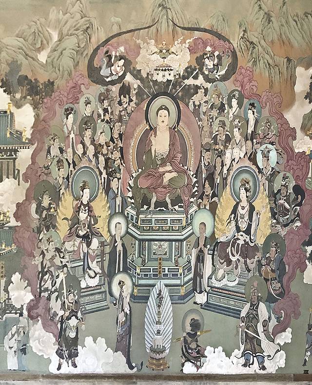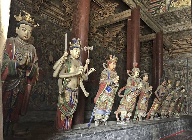 殿内四壁还有清光绪年间补绘的21幅巨型壁画,各种人物5000余个,内容丰富,画工精细,保存完好。