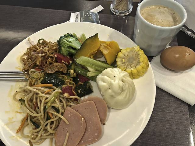感觉大同吃饭的费劲儿早餐就在酒店吃,住店客人25元一位。品种较多,凉热菜几种,午餐肉和蛋,炒面、包子等,还有现煮面,最令我喜欢的是还有现磨咖啡。可以菜面等营养全面吃得很饱,最后再来杯咖啡甜点,非常带劲儿。