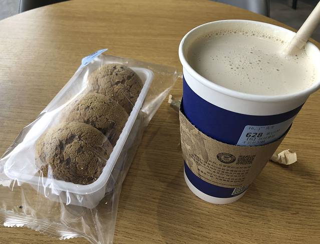 12:00退房,感觉没什么事了,存了行李,又去五层美食城看看吃点什么,瞅瞅不行,担心。便向路口去找瑞幸咖啡,要了杯拿铁和3个小麻署。慢慢坐着吃喝,店里环境很一般,大同人也是素质不高,更显环境下降。