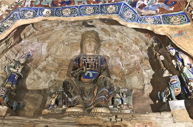从第3窟开始认真欣赏并拍照,工作人员同其它景区一样不怎么管。今天特意来得晚些,感觉游人也比上次少,可以尽兴仔细的欣赏了。