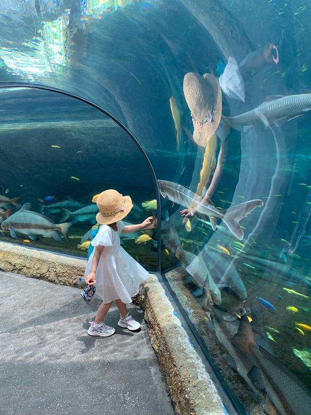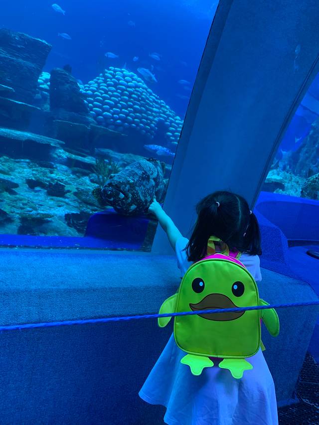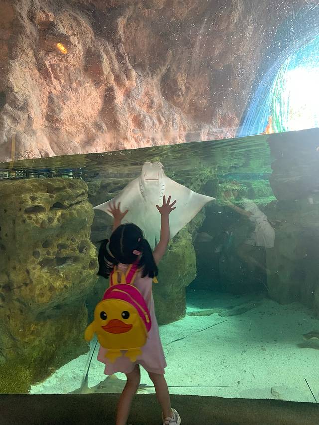 正式开始游玩的第一天,早上7点起床,因为前一晚到酒店,行李很整齐,洗漱整理半小时搞定,7点半出门叫车前往长隆海洋王国度假区,叫车很快(我是直接在百度地图上叫的车,其实几个平台都可以)大概50分钟到达长隆横琴湾酒店,门厅就有人来帮拿行李箱哦,直接进大厅右手边办理入住(14:00点后入住),然后左手边寄存行李,前往长隆海洋王国,9点开园,酒店联票可提前半小时进园,寄存行李前记得拿上防晒、晴雨伞及水壶等物品,要玩耍的还要拿上雨衣,有些水上游乐设施可能需要穿雨衣,当然里面也有卖的一次性的。
