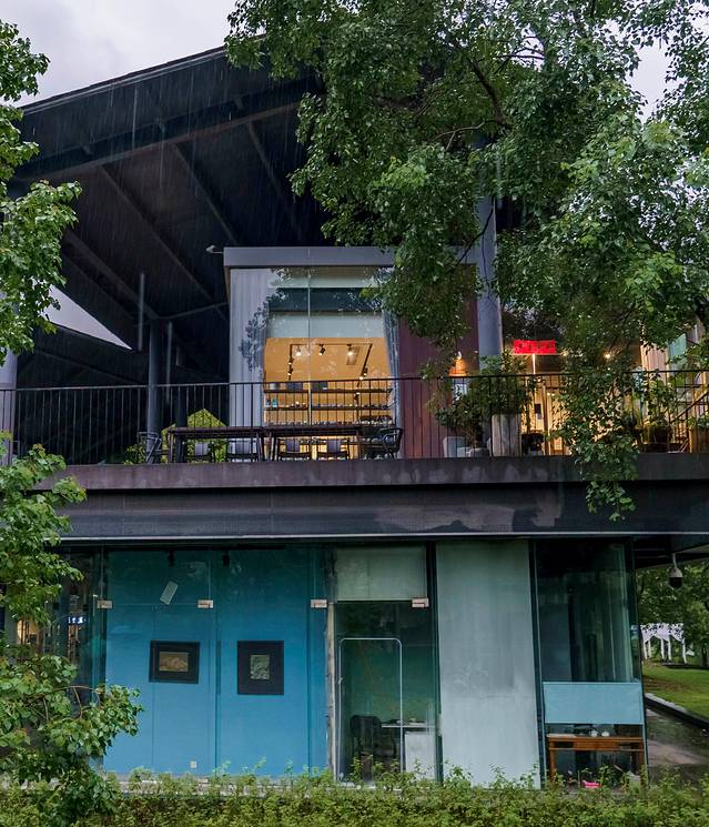 陶溪川街区里面还有一些特色的咖啡厅和餐厅、书店、文创店,走得累了也可以进去歇一歇,特别惊喜的是在水池旁还偶遇了一家猫空书店,夜市之下真的是绝美。偶尔也有联名展、专题展,比如这一次过来就偶遇了“景德镇X敦煌展览”,这种跨越山河的感觉真心很赞。