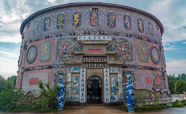 旅行景德镇,各个景点基本上都与瓷器相关,这其中又有一个十分特别的地方,它就是位于浮梁县新平村的【瓷宫】,其外形与客家土楼相似,共有三层楼高,据说总共用了6万件瓷器才修建出来,很有特色!