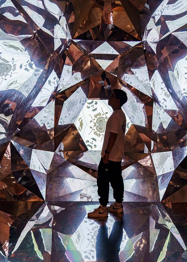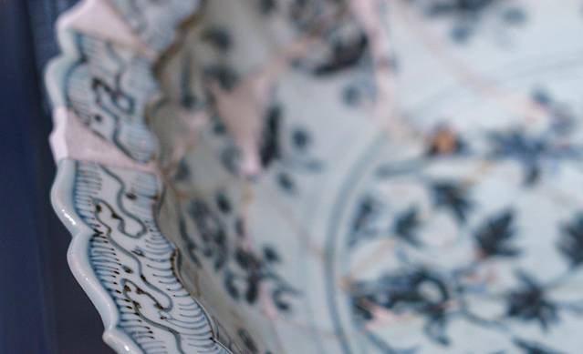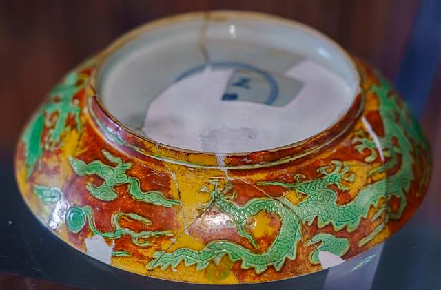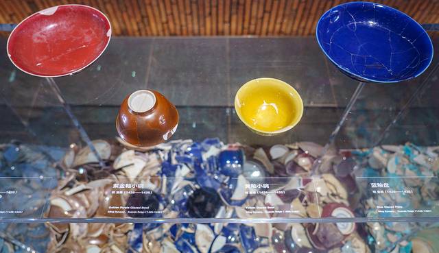 其实,来之前就听说过“御窑博物馆的展品破烂”,来之后才发现馆中的很多展品确实是破碎的瓷片或者充满裂痕的修复品,这一点应该在国内外博物馆当中都是独一份的存在吧?根据馆内介绍讲,是因为当年工匠会把有瑕疵的瓷器毁掉,这种“宁为御碎”的态度,也为我们展现了当时御窑中追求极致完美的态度。所以在中途大家还会经过一个【碎瓷馆】,各种破碎的瓷片搭配灯光,同样也是很震撼的画面~