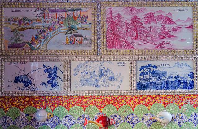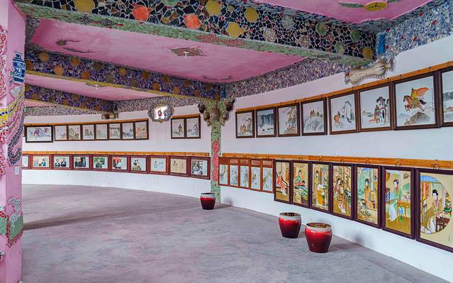 整个瓷宫总共分为3层,占地面积高达1200平方米,无论内外都贴满了各种各样的瓷器,还有景德镇的四大名瓷都巧妙地融入其中;而且,瓷宫还把四大名著、各种典籍故事、历史名人的瓷板画都放了进来,特别是一楼放置展出的《西游记》瓷板画,以古彩技法绘画,色彩浓艳、画工精美,极具美感,也让我们在欣赏景色的同时,有一个学习历史文化的过程。